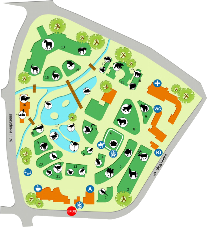 К 2008 году были построены и введены в эксплуатацию копытник, медвежатник, помещения для мелких хищных млекопитающих, вольеры для горных копытных животных, хищных птиц, волков, рысей.
